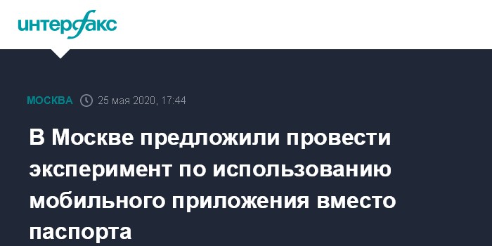 Москва. 25 мая. INTERFAX.RU - Минкомсвязь России предлагает с 1 июля и до конца следующего года провести в Москве эксперимент по использованию мобильного приложения вместо паспорта гражданина РФ для отдельных государственных и муниципальных услуг.