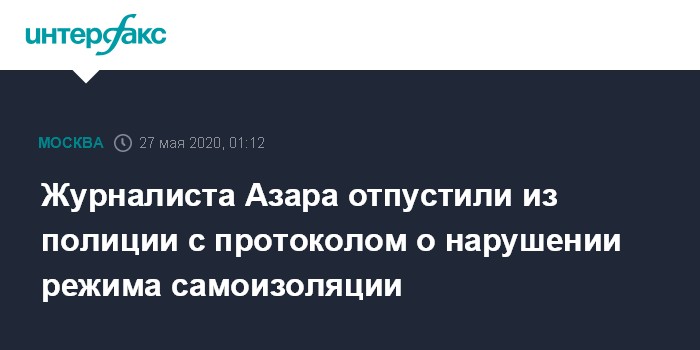 Журналиста Азара отпустили из полиции с протоколом о нарушении режима самоизоляции