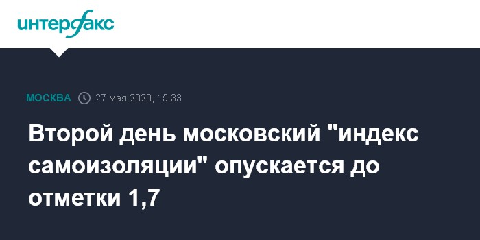 Второй день московский "индекс самоизоляции" опускается до отметки 1,7