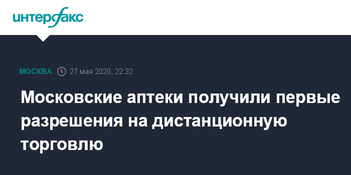 Москва. 27 мая. INTERFAX.RU - Росздравнадзор по Москве выдал столичным аптекам первые разрешения на дистанционную торговлю лекарствами.