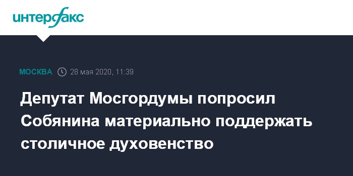 Москва. 28 мая. INTERFAX.RU - Депутат Мосгордумы Максим Круглов (фракция "Яблоко") обратился к мэру Сергею Собянину с просьбой материально поддержать столичное духовенство и сотрудников приходов столицы.