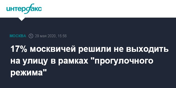 17% москвичей решили не выходить на улицу в рамках "прогулочного режима"