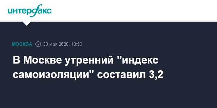 По данным веб-сервиса, индекс самоизоляции в Москве на 9:00 составляет 3,2.