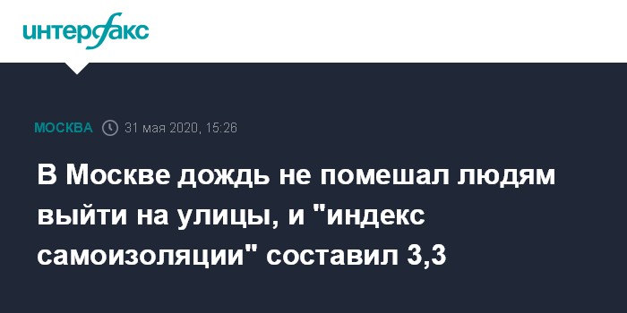 По данным веб-сервиса, "индекс самоизоляции" в Москве на 15:00 составляет 3,3.