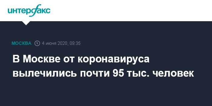 Москва. 4 июня. INTERFAX.RU - В Москве за последние стуки в Москве выздоровел еще 3061 пациент после прохождения лечения от коронавирусной инфекции, сообщила заместитель мэра столицы по вопросам социального развития Анастасия Ракова.