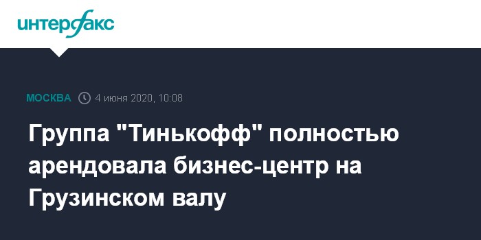 Группа "Тинькофф" полностью арендовала бизнес-центр на Грузинском валу