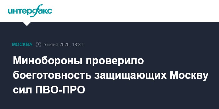 Москва. 5 июня. INTERFAX.RU - Проверка боевой готовности дежурных сил, выполняющих задачи по противовоздушной и противоракетной обороне (ПВО-ПРО) Москвы и Центрального промышленного района, прошла в Воздушно-космических силах (ВКС), сообщает Минобороны России.