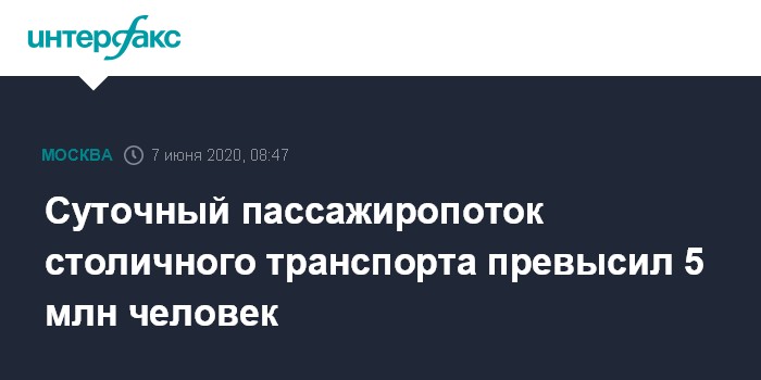 Москва. 7 июня. INTERFAX.RU - Пассажиропоток общественного транспорта Москвы на очередном этапе смягчения ограничений, введенных из-за пандемии коронавируса, значительно вырос, однако не достигает максимального значения, заявил мэр столицы Сергей Собянин в эфире программы "Неделя в городе" в воскресенье.