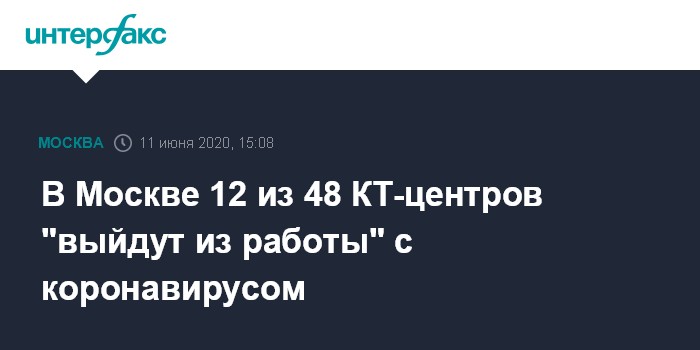 В Москве 12 из 48 КТ-центров "выйдут из работы" с коронавирусом