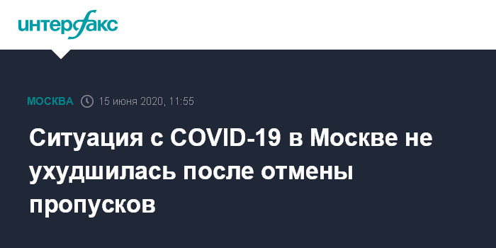 Москва. 15 июня. INTERFAX.RU - Решение о прекращении самоизоляции горожан и отмены пропускного режима с 9 июня было сложным, существовал риск, но ситуация с распространением коронавируса не ухудшилась, заявил мэр Москвы Сергей Собянин.