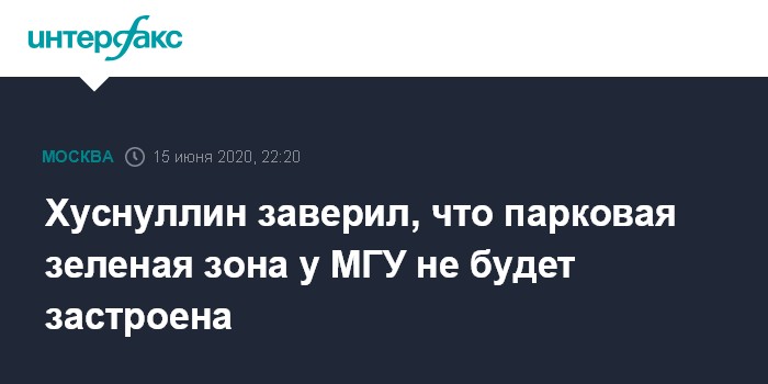 Москва. 15 июня. INTERFAX.RU - Входящая в парк зеленая зона на Воробьевых горах рядом с МГУ им. М. В. Ломоносова не попадет в план новой застройки, заявил вице-премьер РФ Марат Хуснуллин в эфире телеканала РБК.