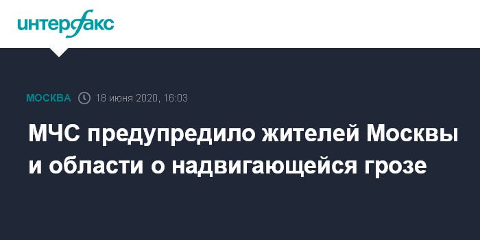 В свою очередь в подмосковном главке МЧС "Интерфаксу" сообщили, что до 21:00 18 июня в области ожидается гроза с дождем, при грозе усиление ветра с порывами до 15 м/с.