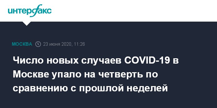 Число новых случаев COVID-19 в Москве упало на четверть по сравнению с прошлой неделей