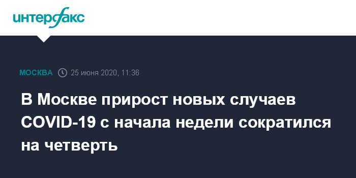 Москва. 25 июня. INTERFAX.RU - Количество новых случаев коронавируса в столице два дня подряд менее 900, прирост новых случаев с начала недели сократился на 26%, сообщили "Интерфаксу" в оперативном штабе по контролю и мониторингу ситуации с COVID-19 в Москве.