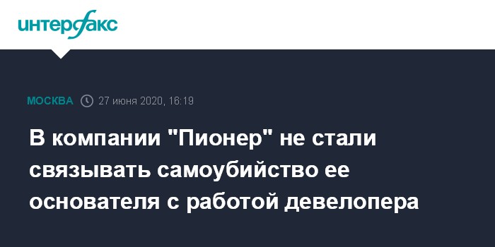 В компании "Пионер" не стали связывать самоубийство ее основателя с работой девелопера