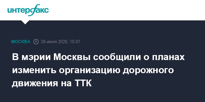 В мэрии Москвы сообщили о планах изменить организацию дорожного движения на ТТК