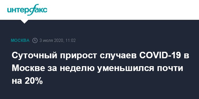 Москва. 3 июля. INTERFAX.RU - В Москве подтверждено 659 случаев заражения коронавирусной инфекцией за сутки - это на 89% меньше, чем 3 мая (5 948 случаев), и почти на 20% меньше, чем неделю назад.