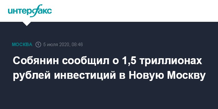Москва. 5 июля. INTERFAX.RU - Власти столицы и частный бизнес с 2012 года вложили в развитие Новой Москвы порядка 1,5 трлн рублей, заявил мэр столицы Сергей Собянин в воскресенье.
