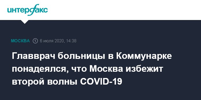 Главврач больницы в Коммунарке понадеялся, что Москва избежит второй волны COVID-19