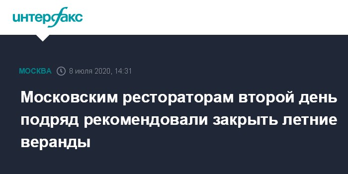 Московским рестораторам второй день подряд рекомендовали закрыть летние веранды