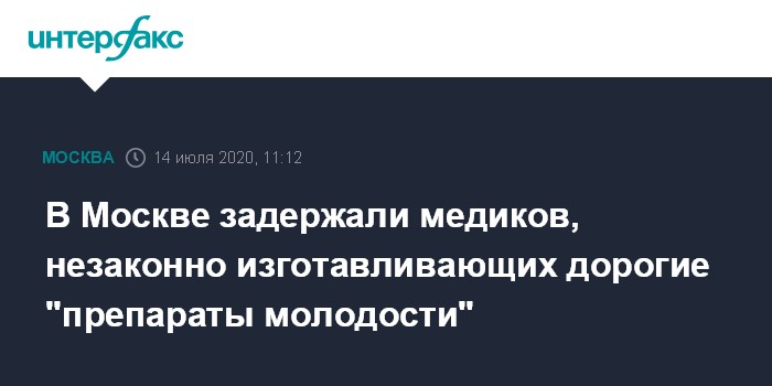 Москва. 14 июля. INTERFAX.RU - Сотрудники правоохранительных органов задержали пятерых москвичей, подозреваемых в изготовлении и дальнейшем сбыте дорогостоящих лекарственных средств с гиалуроновой кислотой, сообщила "Интерфаксу" официальный представитель МВД России Ирина Волк.