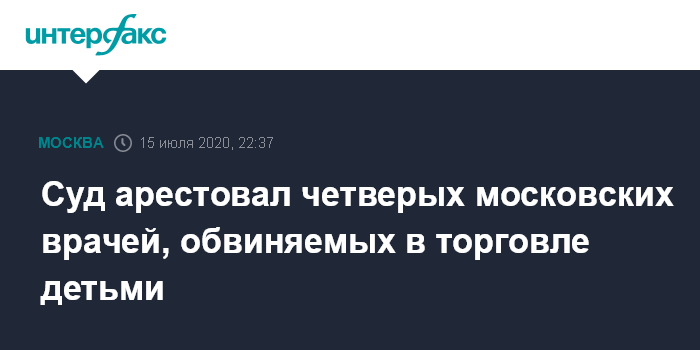 Москва. 15 июля. INTERFAX.RU - Басманный суд Москвы в среду отправил под арест четверых медработников, обвиняемых по делу о торговле людьми, возбужденном после смерти младенца, рожденного суррогатной матерью для иностранцев в подмосковном Одинцово.