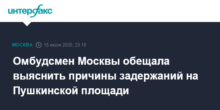 Москва. 15 июля. INTERFAX.RU - Уполномоченный по правам человека в Москве Татьяна Потяева заявила, что обратится в правоохранительные органы для выяснения причин задержания участников несанкционированной акции против внесения поправок в Конституцию на Пушкинской площади.