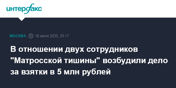 В отношении двух сотрудников "Матросской тишины" возбудили дело за взятки в 5 млн рублей