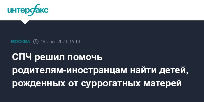 Москва. 18 июля. INTERFAX.RU - В Совет при президенте РФ по правам человека (СПЧ) поступило обращение от родителей - граждан Филиппин - с просьбой помочь найти детей, рожденных от суррогатных матерей, которых забрали органы опеки из-за возбужденного дела о торговле людьми.