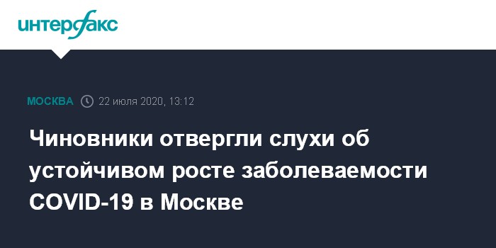 Москва. 22 июля. INTERFAX.RU - В департаменте здравоохранения Москвы опровергли информацию о том, будто бы в городе несколько дней уверенно растет заболеваемость коронавирусной инфекцией. Такие данные появились в интернете.