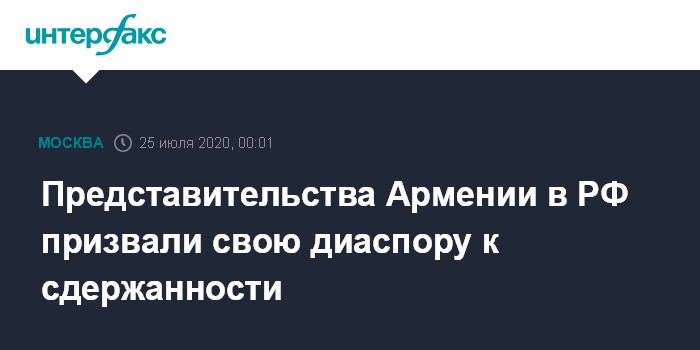 Москва. 25 июля. INTERFAX.RU - Посольство Армении в РФ, Армянская апостольская церковь и Союз армян России призвали армянскую диаспору проявлять сдержанность.