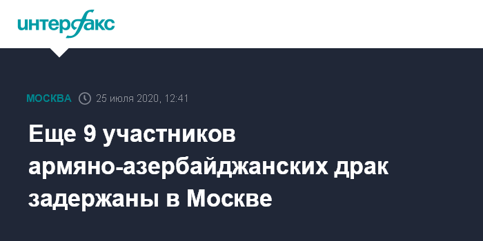 Москва. 25 июля. INTERFAX.RU - Девять участников армяно-азербайджанского конфликта задержаны в Москве, сообщили "Интерфаксу" в пресс-службе московского главка МВД.