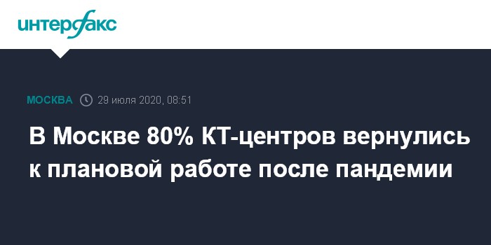 В Москве 80% КТ-центров вернулись к плановой работе после пандемии