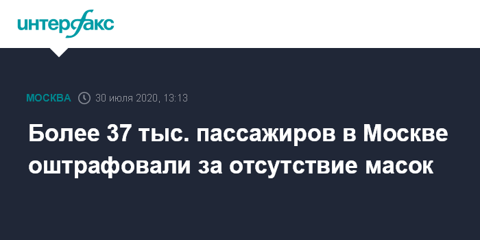 Москва. 30 июля. INTERFAX.RU - С 12 мая, когда в Москве стало обязательным ношение масок и перчаток в общественных местах и транспорте, оштрафованы свыше 37 тыс. пассажиров метро и наземного транспорта.