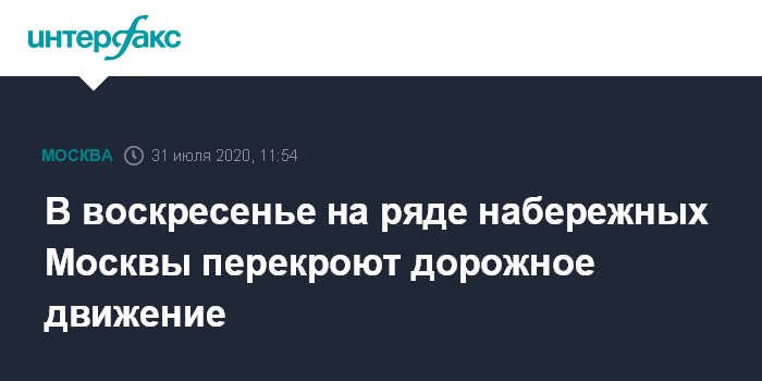 Москва. 31 июля. INTERFAX.RU - В связи с проведением московского полумарафона в воскресенье, 2 августа, перекроют движение на столичных набережных.