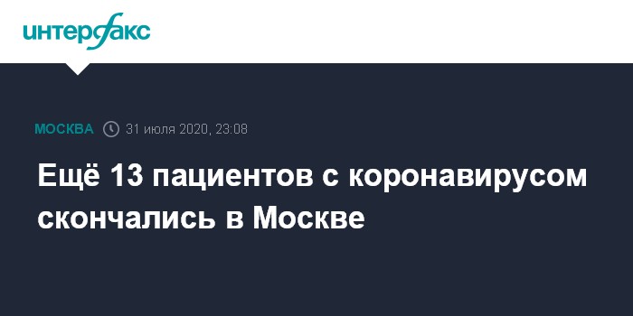 Ещё 13 пациентов с коронавирусом скончались в Москве