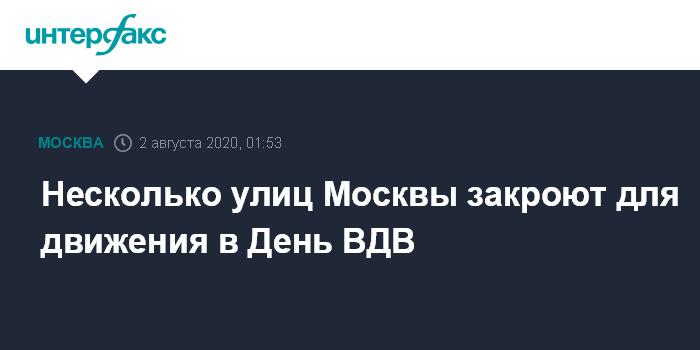 Москва. 2 августа. INTERFAX.RU - В День Воздушно-десантных войск, 2 августа, в связи с проведением различных мероприятий временно закроют для движения транспорта ряд улиц, сообщили "Интерфаксу" в Центре организации дорожного движения столицы.