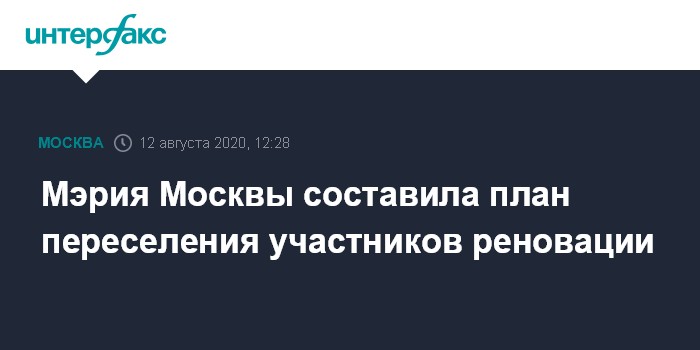 Москва. 12 августа. INTERFAX.RU - В мэрии Москвы завершили составление ориентировочного перечня переселения по программе реновации, сообщила пресс-служба столичного стройкомплекса. План опубликован.