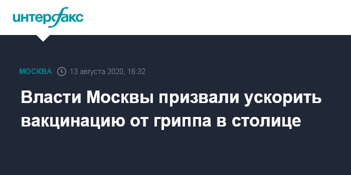 Москва. 13 августа. INTERFAX.RU - Для минимизации наложения последствий сезонных заболеваний на ситуацию с коронавирусом в Москве необходимо провести более массовую вакцинацию от гриппа в более короткие сроки, чем ранее, заявил мэр столицы Сергей Собянин.