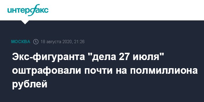 Экс-фигуранта "дела 27 июля" оштрафовали почти на полмиллиона рублей