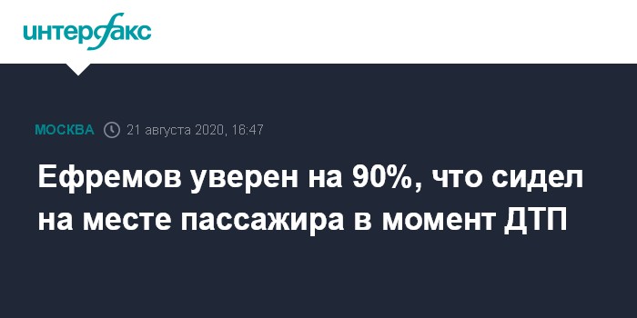 Москва. 21 августа. INTERFAX.RU - Актер Михаил Ефремов, обвиняемый в смертельном ДТП в центре Москвы, заявил в суде, что, скорее всего, сидел на месте пассажира в момент аварии.