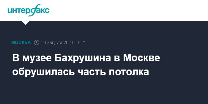 Москва. 23 августа. INTERFAX.RU - В магазине театрального музея имени Бахрушина в Москве в воскресенье обрушилась часть потолка, сообщили "Интерфаксу" в пресс-службе музея.