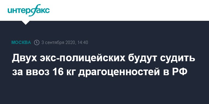 Москва. 3 сентября. INTERFAX.RU - Химкинский суд рассмотрит уголовное дело двух бывших сотрудников транспортной полиции, участвовавших в незаконном ввозе в Россию драгоценностей на сумму более 70 млн рублей, сообщили "Интерфаксу" в Московской межрегиональной транспортной прокуратуре в четверг.