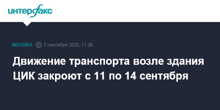 Москва. 7 сентября. INTERFAX.RU - С 11 по 14 сентября, в том числе в Единый день голосования - 13 сентября - возле Центризбиркома в центре Москвы будет перекрыто автомобильное движение, сообщает Центр организации дорожного движения в понедельник.