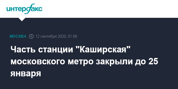 Москва. 12 сентября. INTERFAX.RU - Москва. 12 сентября. ИНТЕРФАКС - На станции "Каширская" Замоскворецкой линии московского метрополитена с субботы и до 25 января 2021 года не будут останавливаться поезда, следующие из центра на юг, сообщили "Интерфаксу" в пресс-службе подземки.