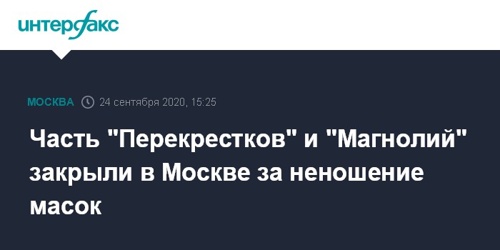 Часть "Перекрестков" и "Магнолий" закрыли в Москве за неношение масок