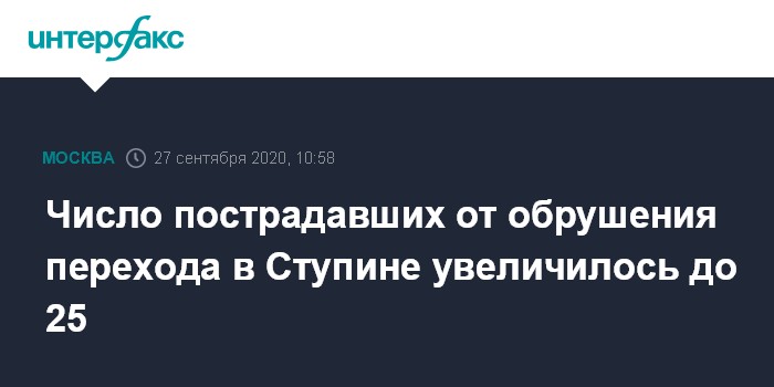 Число пострадавших от обрушения перехода в Ступине увеличилось до 25
