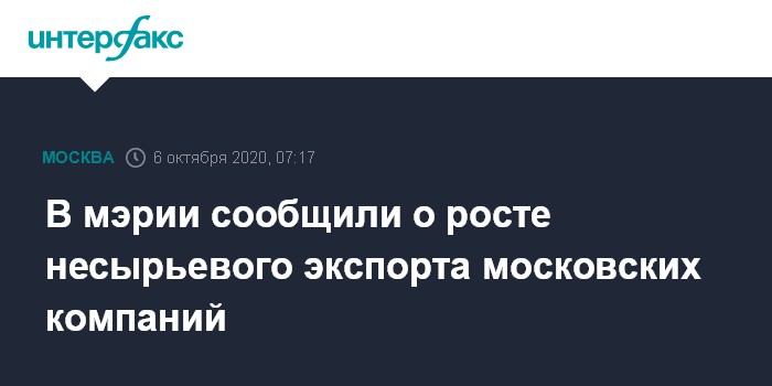 Москва. 6 октября. INTERFAX.RU - Объем несырьевого неэнергетического экспорта (ННЭ) Москвы по итогам первых семи месяцев 2020 года составил $18,3 млрд., сообщила заместитель мэра Москвы Наталья Сергунина, которую цитирует портал мэра и правительства Москвы.
