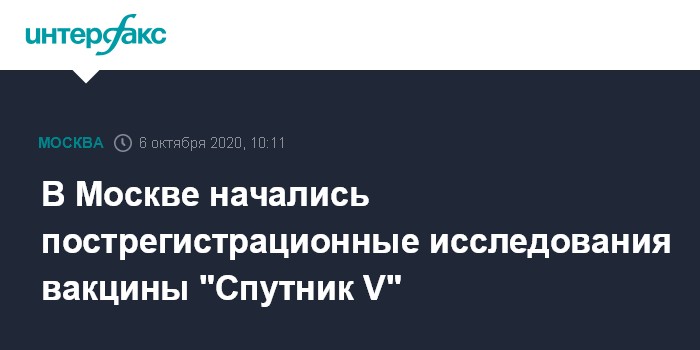 Москва. 6 октября. INTERFAX.RU - Группа компаний "Медси" сообщила о начале пострегистрационных клинических исследований вакцины против коронавируса "Спутник V" института имени Гамалеи в одном из ее клинико-диагностических центров.