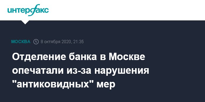 Отделение банка в Москве опечатали из-за нарушения "антиковидных" мер